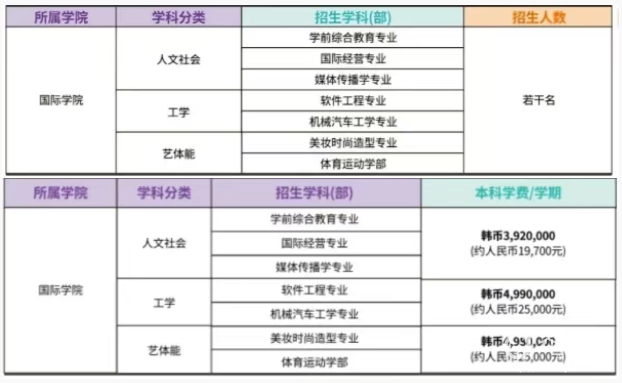 可以詳細的查到招生要求,課程設置情況,甚至詳細的學費/生活費列表。比如:信韓大學專升本|26年3月中文授課一年制