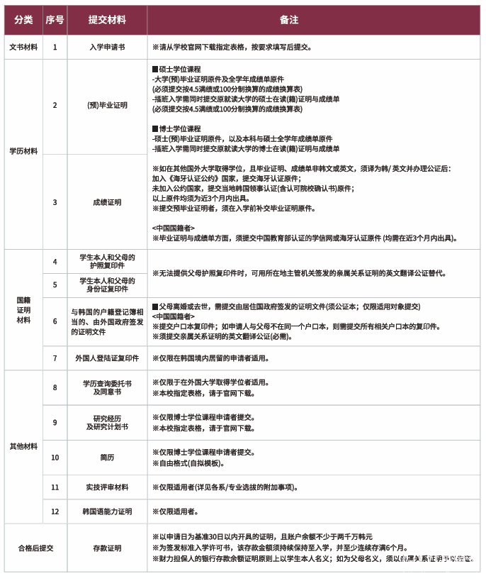 3、博士申請者需為韓國國內(nèi)外大學碩士學位(預)獲得者或者法律規(guī)定的擁有上述同等學力者