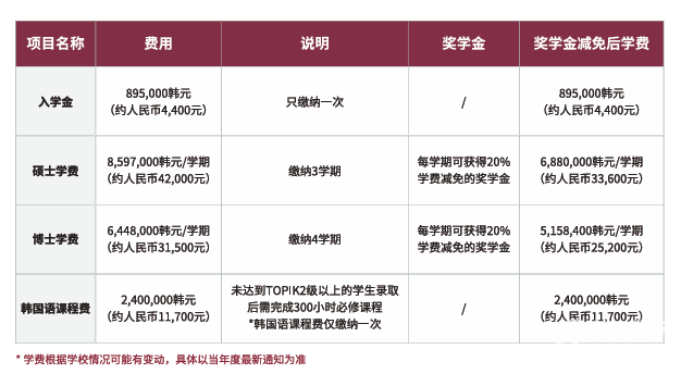 碩博專業(yè)中唯一提供每學期20%學費減免獎學金,更有TOPIK獎學金、成績優(yōu)異獎學金等政策