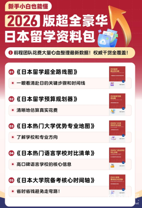 很多人擔(dān)心日本留學(xué)申請復(fù)雜,又是學(xué)日語又是考EJU,其實找對方法就不用慌。我整理了一份《日本留學(xué)速通清單》,里面把選校邏輯、EJU備考重點、面試技巧還有就職提前規(guī)劃的要點都寫清楚了,能幫你少走很多彎路,告別信息焦慮。